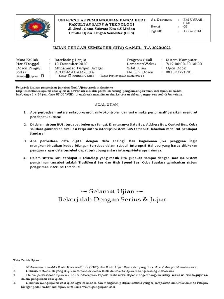 Screen recordervideo saya ini direkam dengan screen recorder. Pulsa listrik digunakan pada mikroprosesor dan mikrokontroler :. Kunci jawaban uts mikrokontroler bsi semester 3 tipe a contoh soal pilihan ganda . Tulislah terlebih dahulu nomor ujian anda pada lembar jawaban yang disediakan. Soal ujian fptk sistem mikroprosesor dibuat oleh: